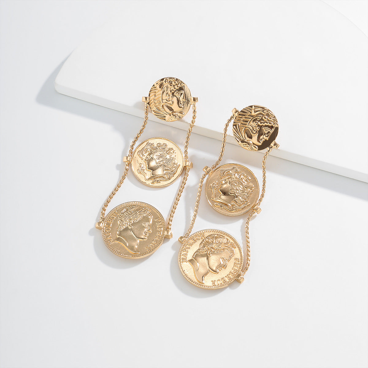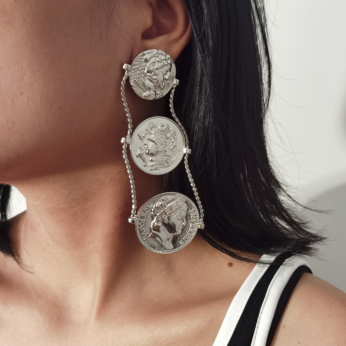 Jewelry Cross Retro Heart Earrings Female Geometric Metal Sector Exaggerated Earrings